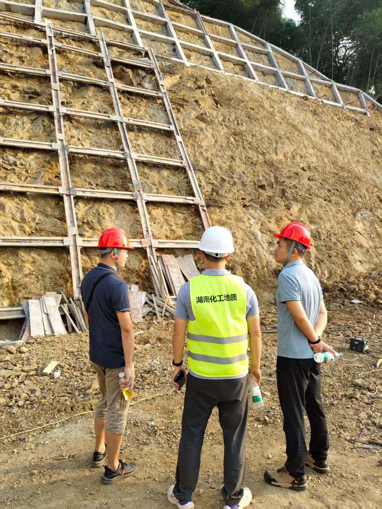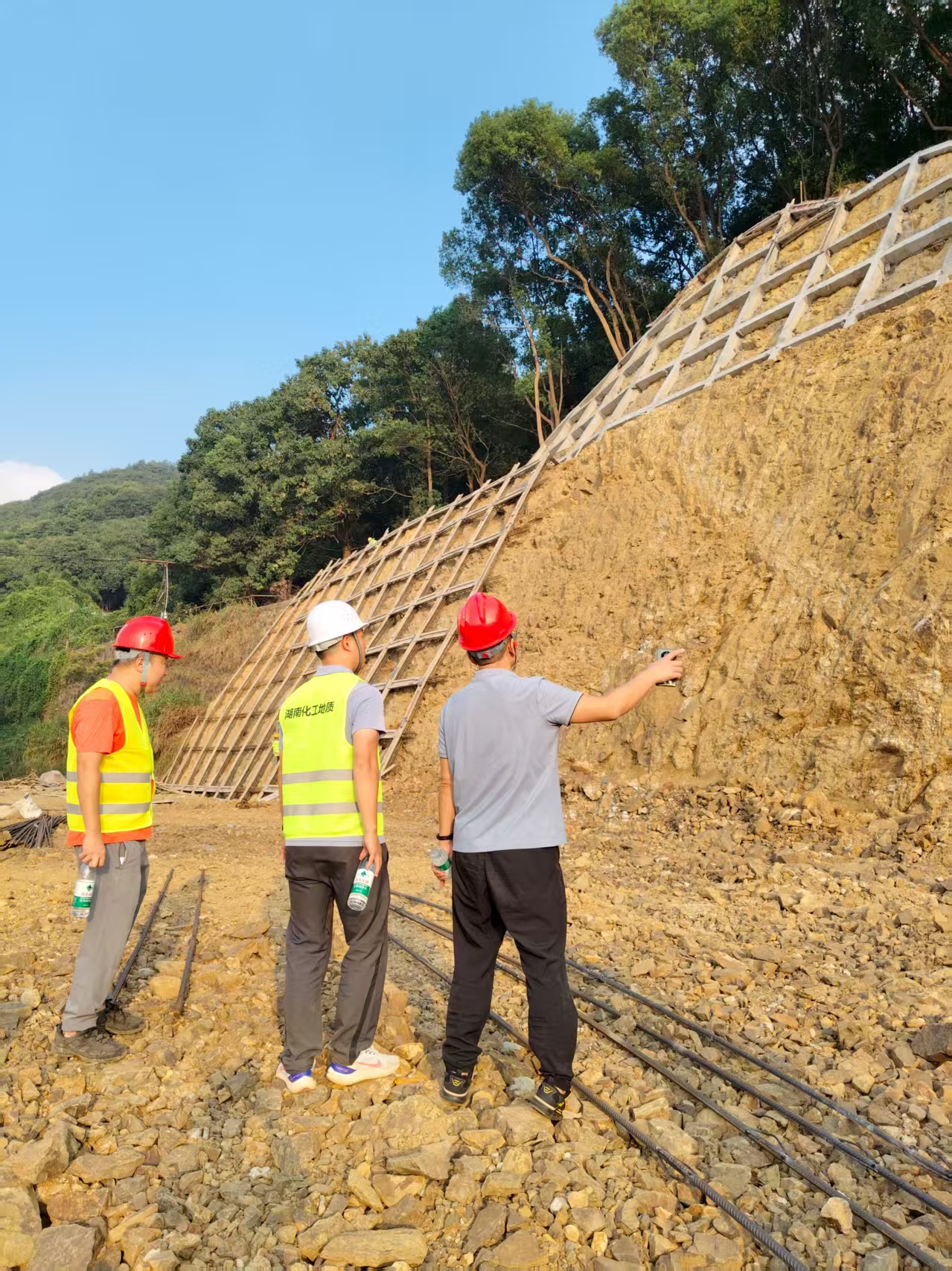 在項(xiàng)目施工現(xiàn)場(chǎng),檢查組針對(duì)高邊坡錨桿、格構(gòu)梁及擋土墻施工特點(diǎn),重點(diǎn)核查了邊坡安全防護(hù)、施工機(jī)械設(shè)備維護(hù)及臨時(shí)水電安全等關(guān)鍵環(huán)節(jié),確保各項(xiàng)安全措施到位。